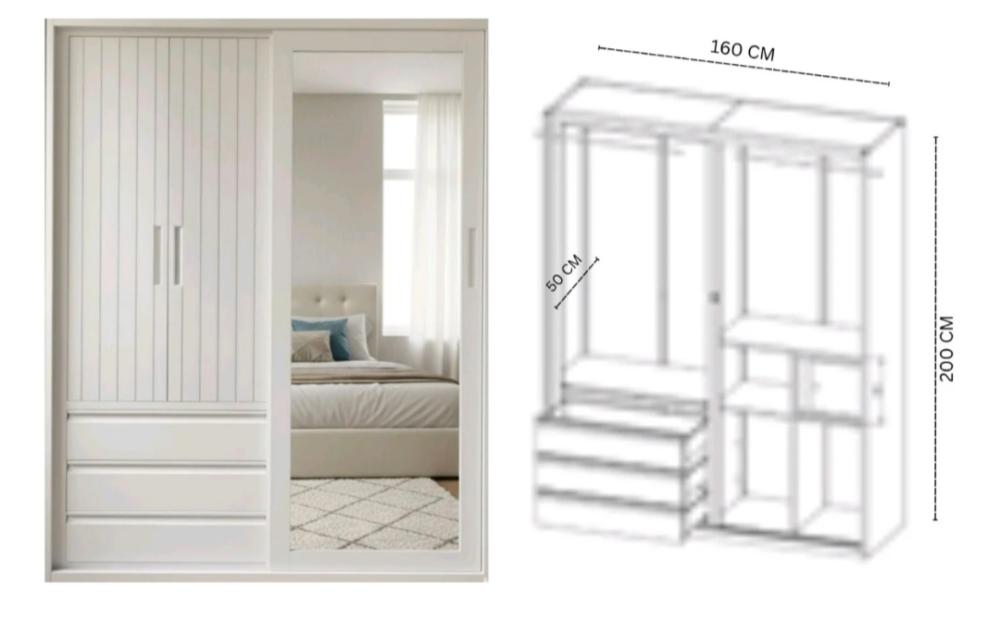 2 Swing, 1 Sliding Door with Mirror